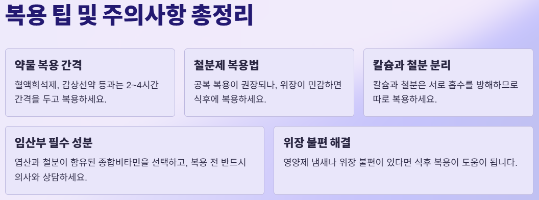 1. 흡수율 경쟁: 칼슘, 마그네슘, 철분 등 미네랄끼리 흡수 경로가 겹쳐 단일 제제보다 흡수율이 떨어질 수 있습니다. 2. 위장 장애: 고함량 제품의 경우 빈속 섭취 시 속 쓰림이나 메스꺼움을 유발할 수 있습니다. 3. 과잉 섭취 주의: 지용성 비타민(A, D, E, K)이 과다 축적될 위험이 있습니다. |